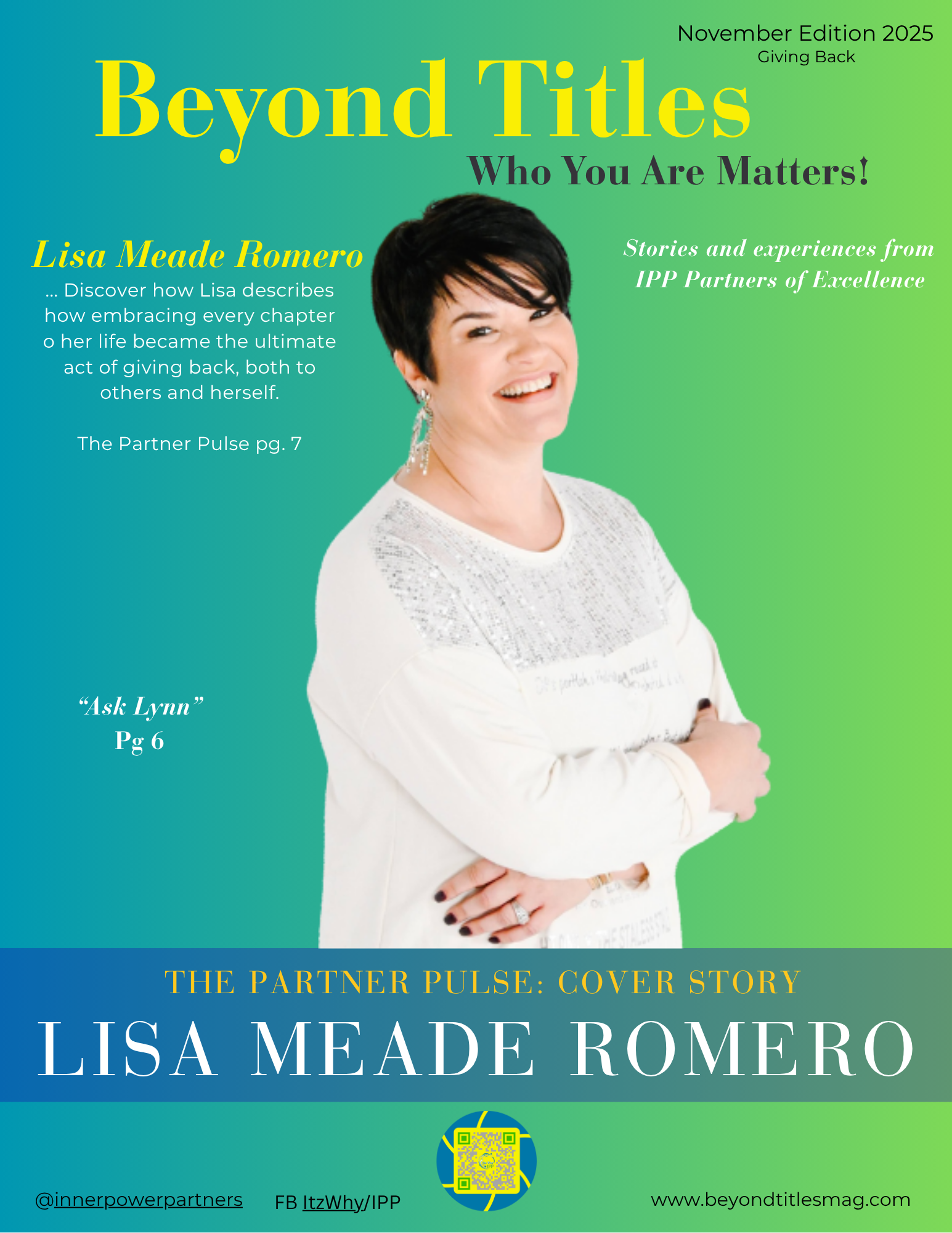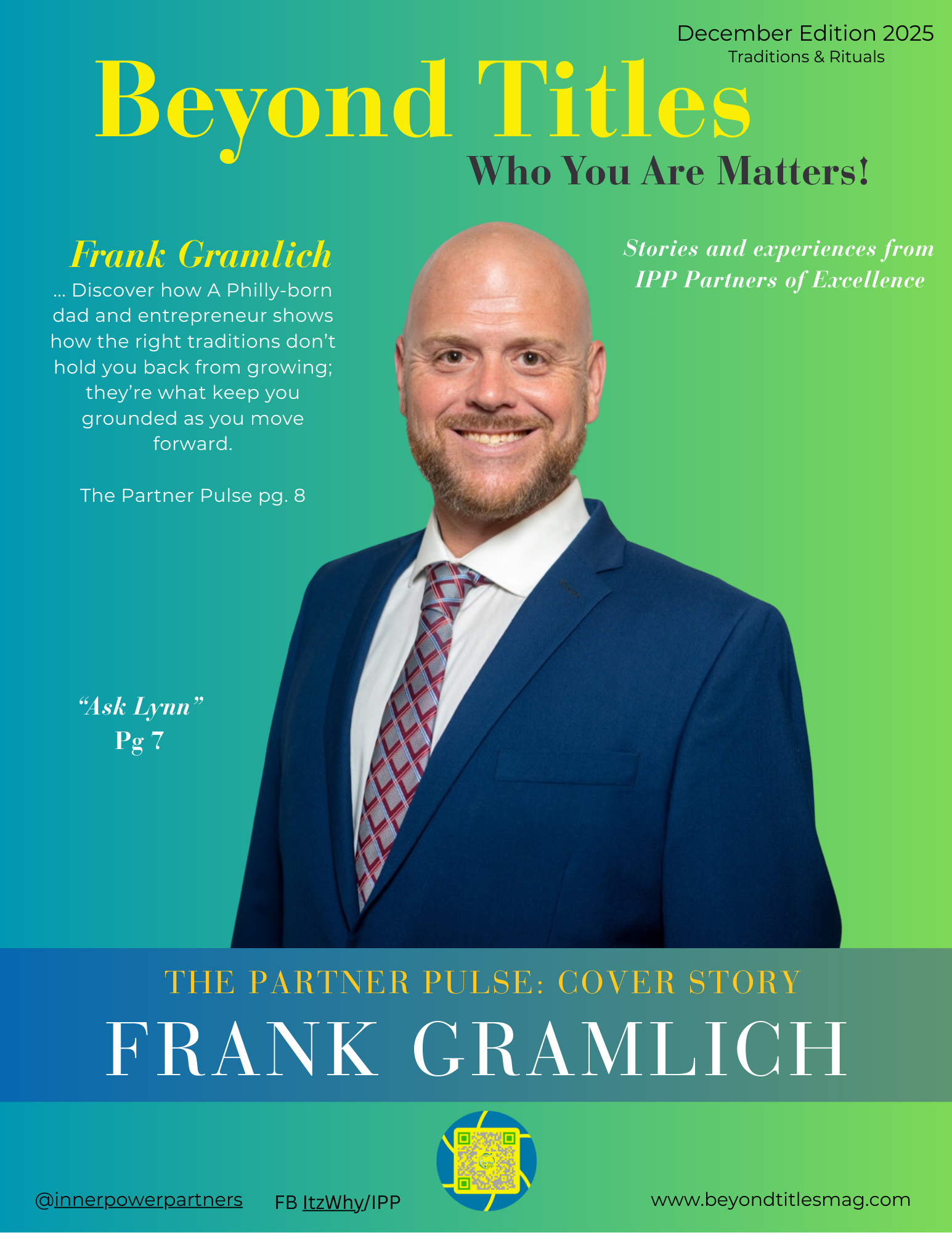 The December issue of Beyond Titles Magazine explores how traditions and rituals, big and small, shape who we are beyond our roles. Through heartfelt stories from the Inner Power Partners community, this issue highlights family customs, daily practices, and holiday rhythms that ground us in gratitude, deepen connection, and help us intentionally choose what we want to carry forward into the new year.