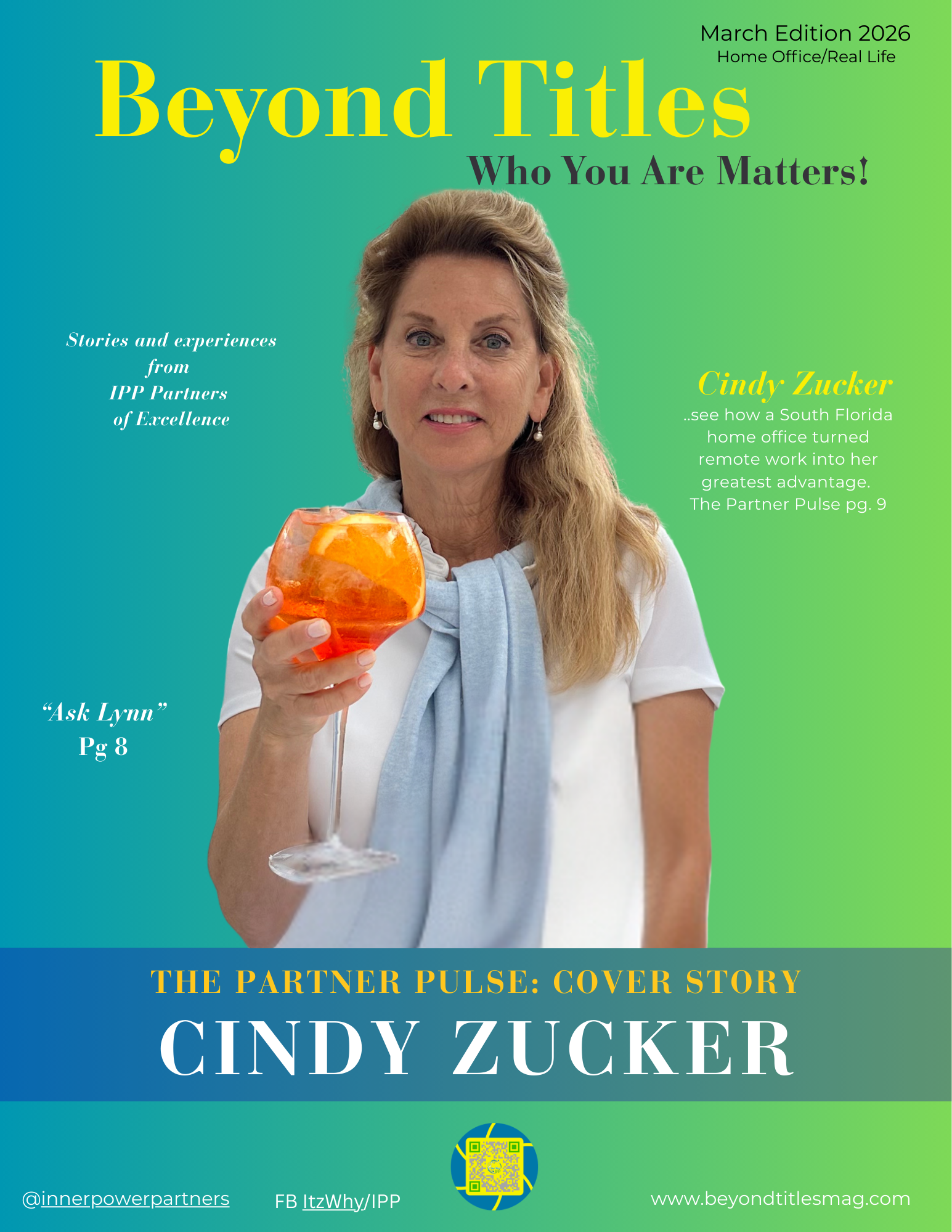 In our March 2026 issue, Beyond Titles Magazine explores “Home Office / Real Life” through the honest stories of professionals who are building businesses while navigating barking dogs, school runs, Zoom calls, side hustles, and self-care, all while staying true to who they are beyond their titles. Our cover story features Cindy Zucker, Business Development Specialist at Butler Title and active Inner Power Partners member, who shares how her South Florida home office has become a true command center for relationships, referrals, and results, proving that remote work, when led with intention, can amplify both impact and authenticity.